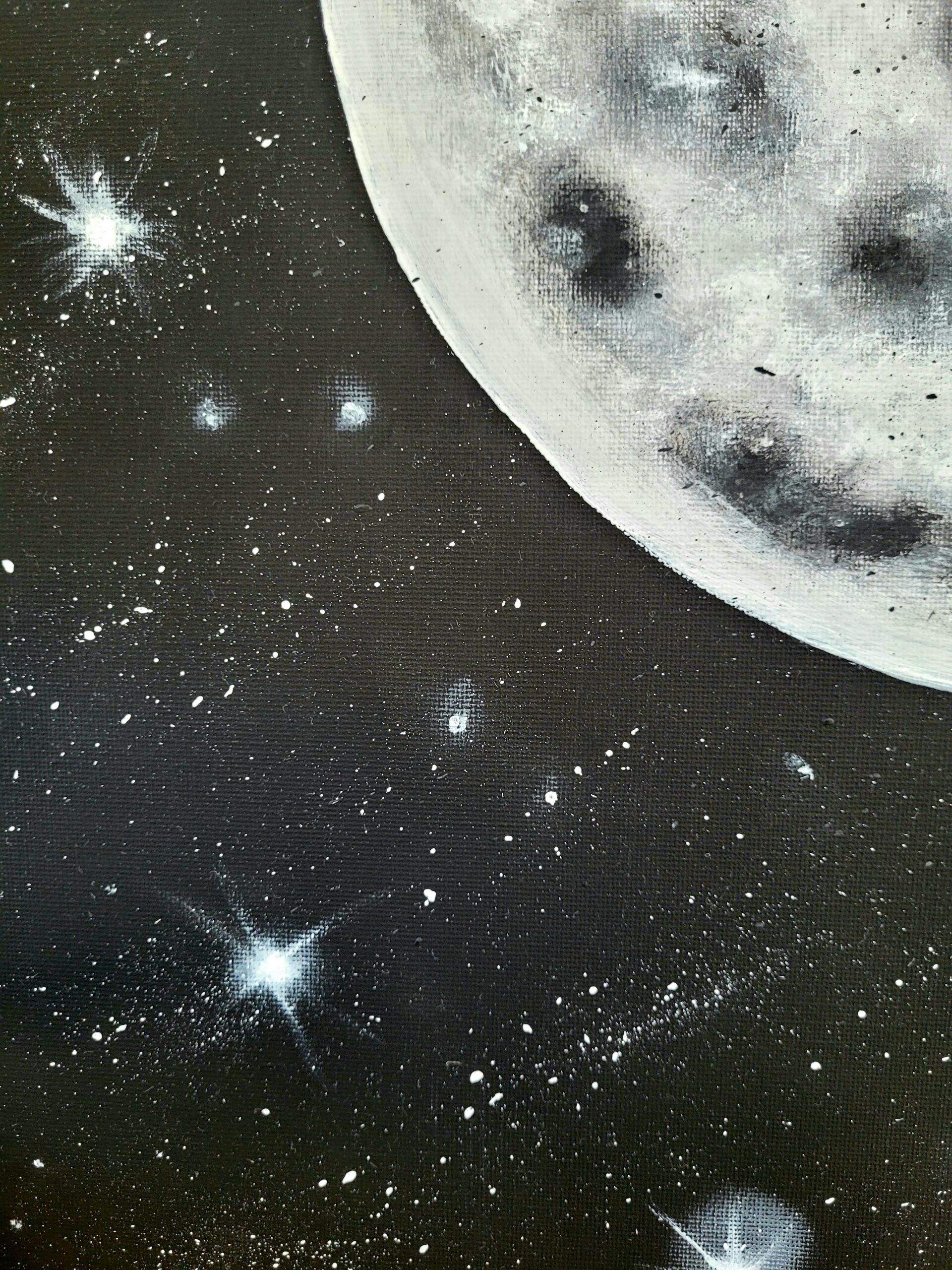 Każdy detal obrazu został namalowany ręcznie, a realistycznie oddane kratery Księżyca oraz subtelne refleksy światła na czerni płótna sprawiają, że obraz przyciąga wzrok i zachwyca swoją głębią. Co ważne, ten obraz nocnego nieba z gwiazdami jest absolutnie niepowtarzalny i istnieje w jednym egzemplarzu.
