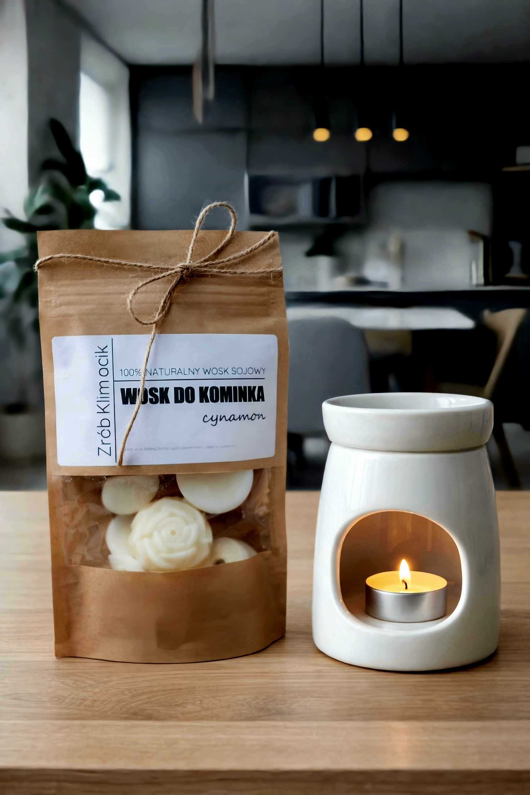 Każdy wosk Cynamon jest ręcznie wykonany z wysokiej jakości wosku oraz starannie dobranych aromatów, które stopniowo uwalniają intensywny, korzenny zapach. Dzięki temu nie przytłacza i wypełnia przestrzeń przyjemną, ciepłą wonią. Jest idealny do kominka zapachowego oraz doskonały do rytuałów relaksu i domowego SPA.